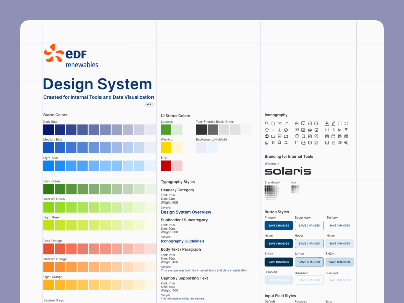 Built a scalable design system to unify EDF’s internal tools—centralizing data workflows, streamlining decisions, and supporting analytics-heavy environments.