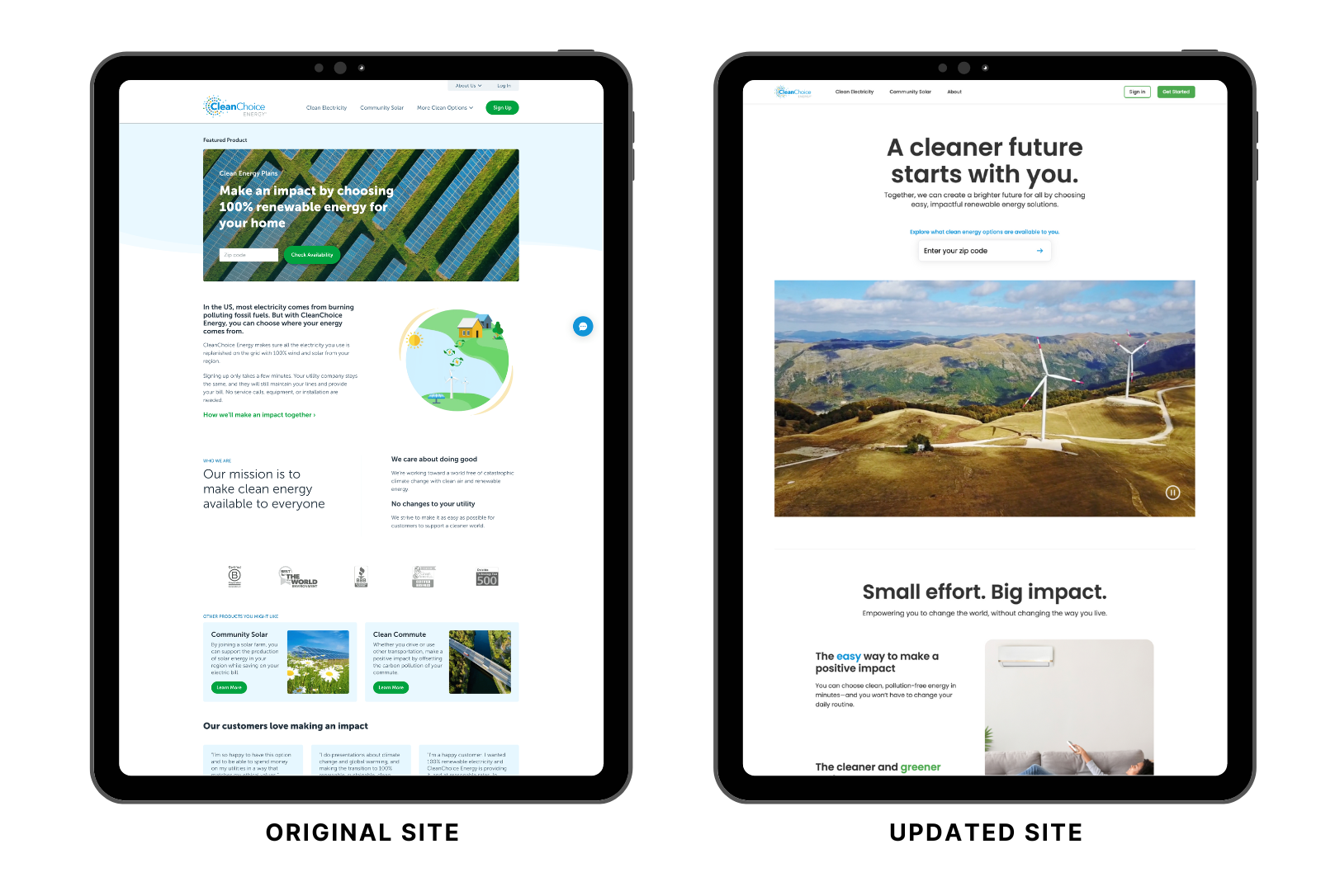 Outdated Brand Experience – The visual design failed to reflect CleanChoice’s mission-driven ethos or position it as a modern energy alternative.