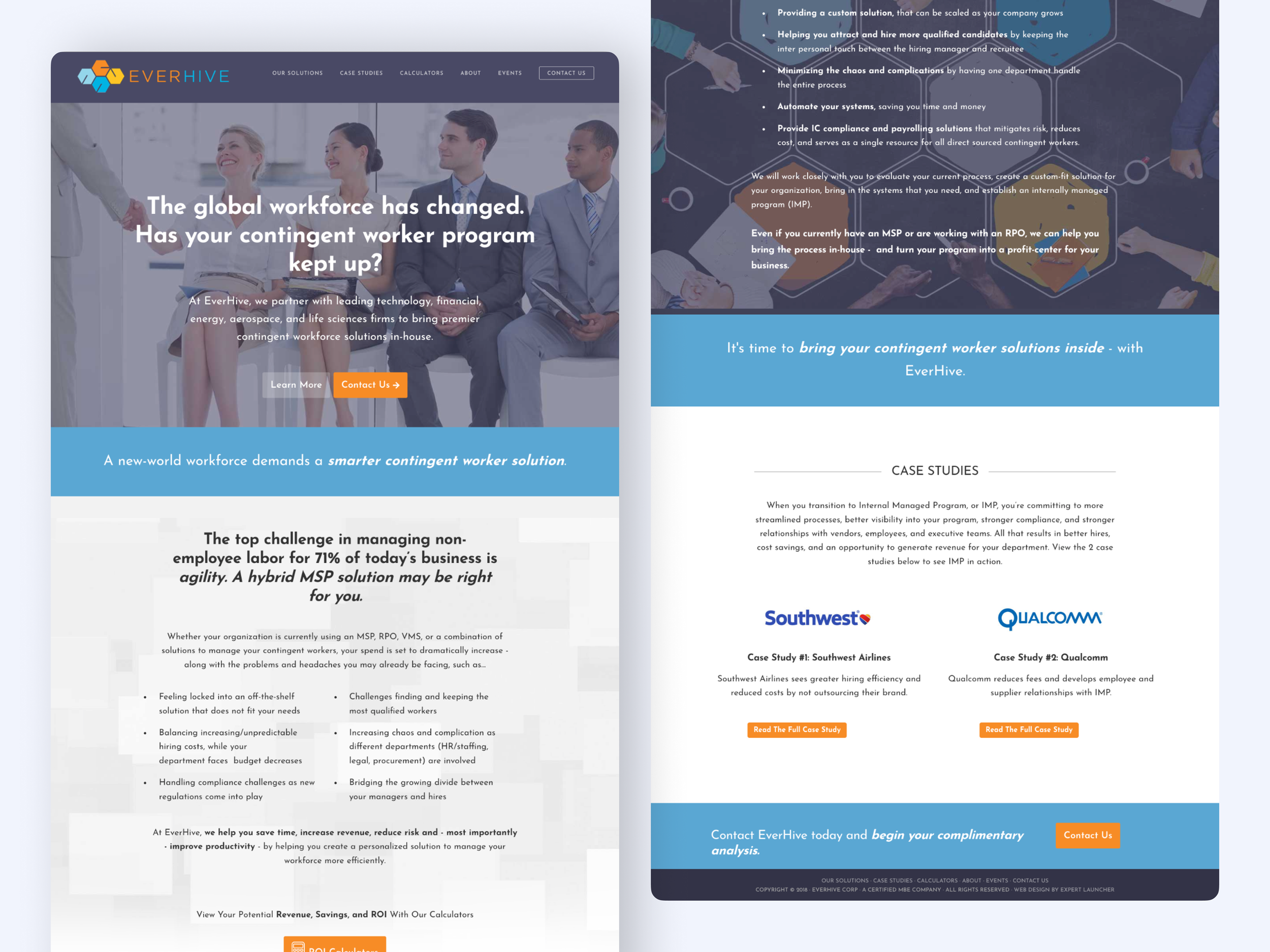 Everhive’s website wasn’t just a marketing asset—it was a first impression for enterprise leaders weighing high-stakes workforce management decisions. The site needed to earn trust quickly, clarify offerings without jargon, and convert interest into action.